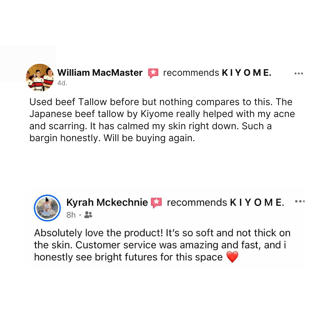 Kiyome is a natural skincare moisturiser made with Japanese beef tallow, New Zealand Manuka honey & beeswax, and Mediterranean olive oil.